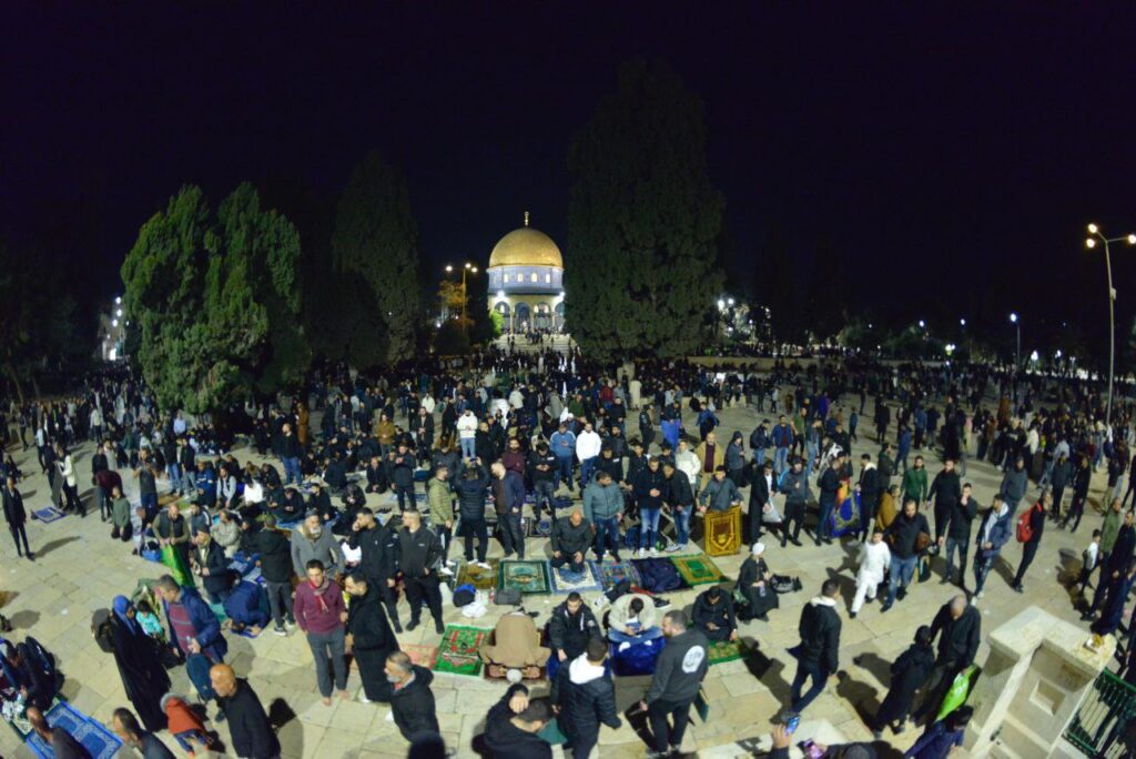 أدى آلاف المصلين صلاة العشاء والتراويح في المسجد الأقصى في أول جمعة من شهر رمضان ، رغم الإجراءات العسكرية المشددة.