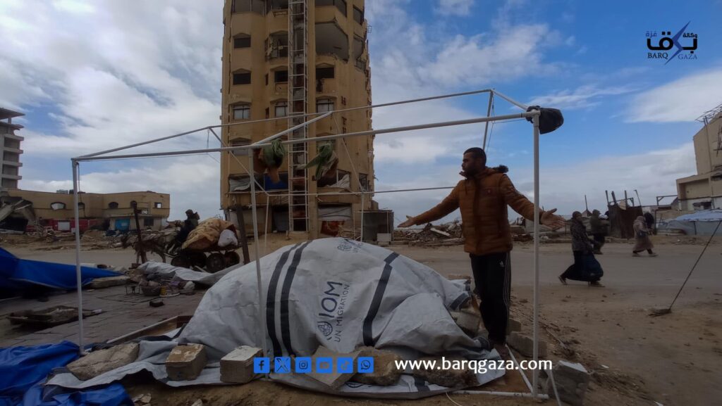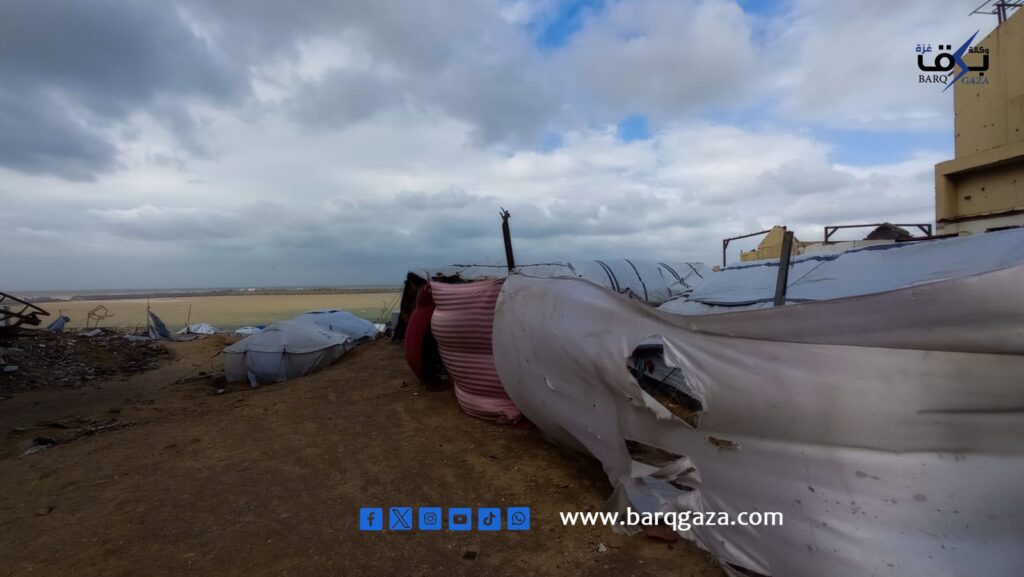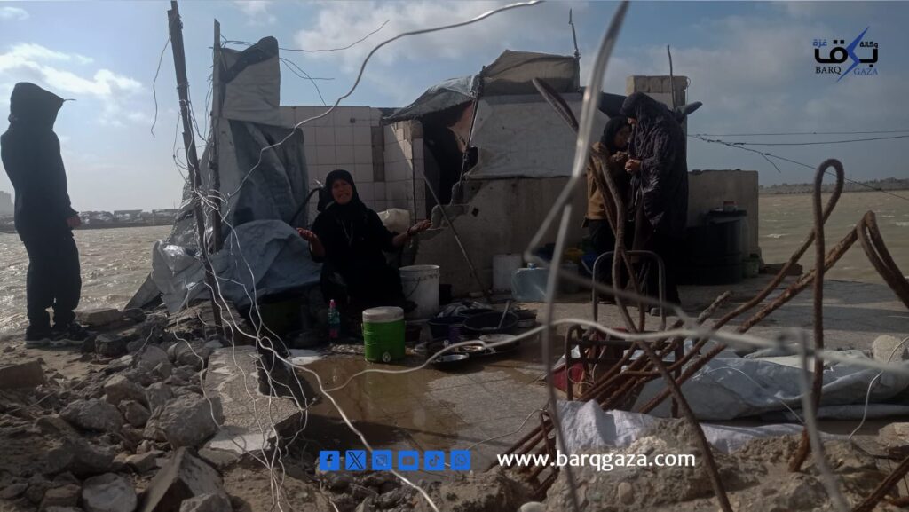 أمام أمواج البحر الهائجة، وتحت سماء مثقلة بالغيوم والعواصف، يجلس معتصم رجب (41 عامًا) متكئًا على حجر صغير بالكاد يقيه رطوبة الأرض ، يضع يده اليمنى على وجهه، وكأنها تحاول أن تخفي عجزًا أثقل من أن يُرى، فيما تتجه عيناه نحو خيمته المهترئة التي أسقطتها الرياح العاتية قبل ساعات ، لا يفعل شيئًا سوى الانتظار ، انتظار أن يهدأ المنخفض الجوي، ليبدأ من جديد بمحاولة إعادة بناء مأوى لا يصمد طويلًا.
